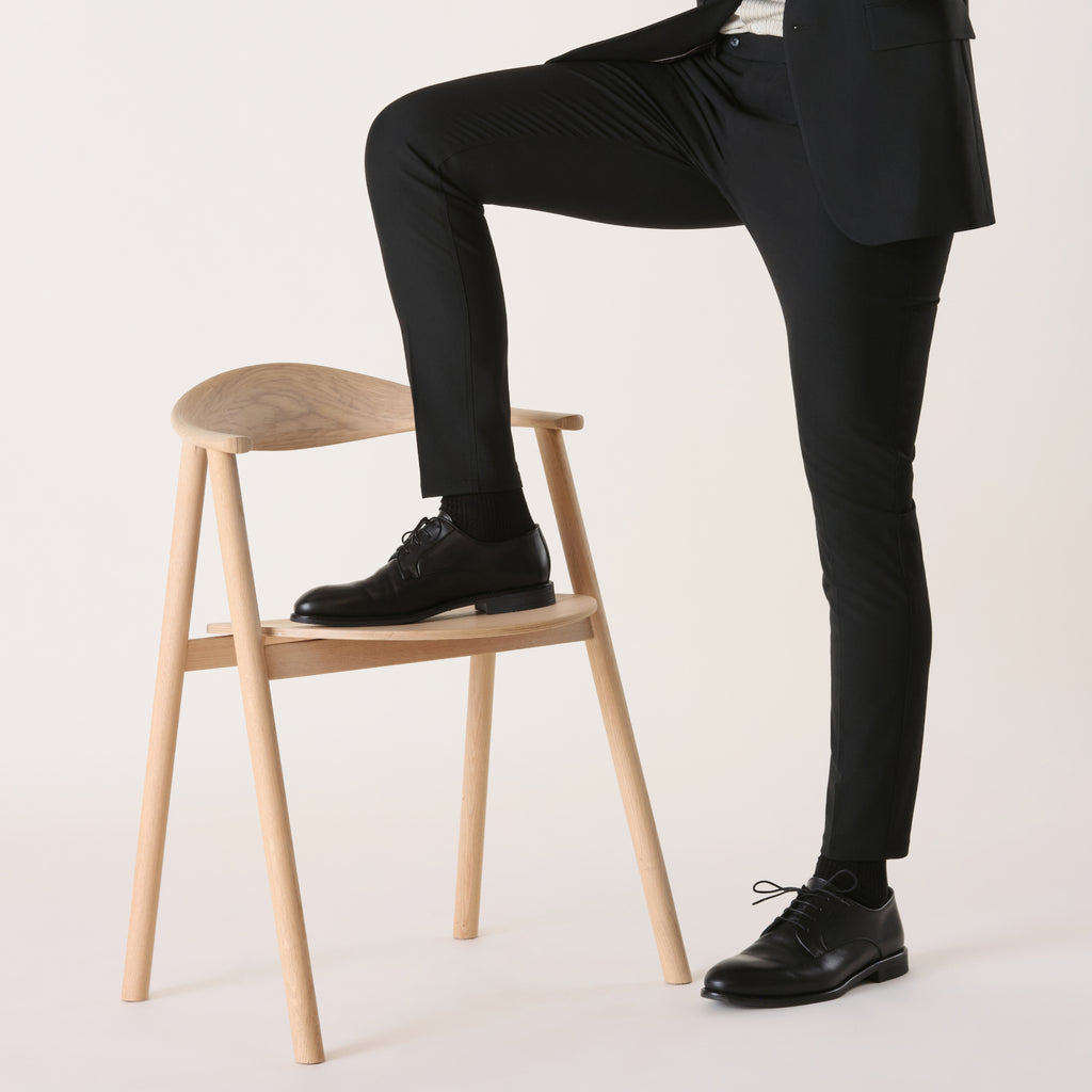 Auch unsere Anzughose, die Essential Suit Pants, ist als Slim Fit und Regular Fit erhältlich. Slim Fit ist insgesamt körpernah und schmal geschnitten, während der Regular Fit etwas mehr Platz besonders im Bereich der Oberschenkel und Waden bietet.