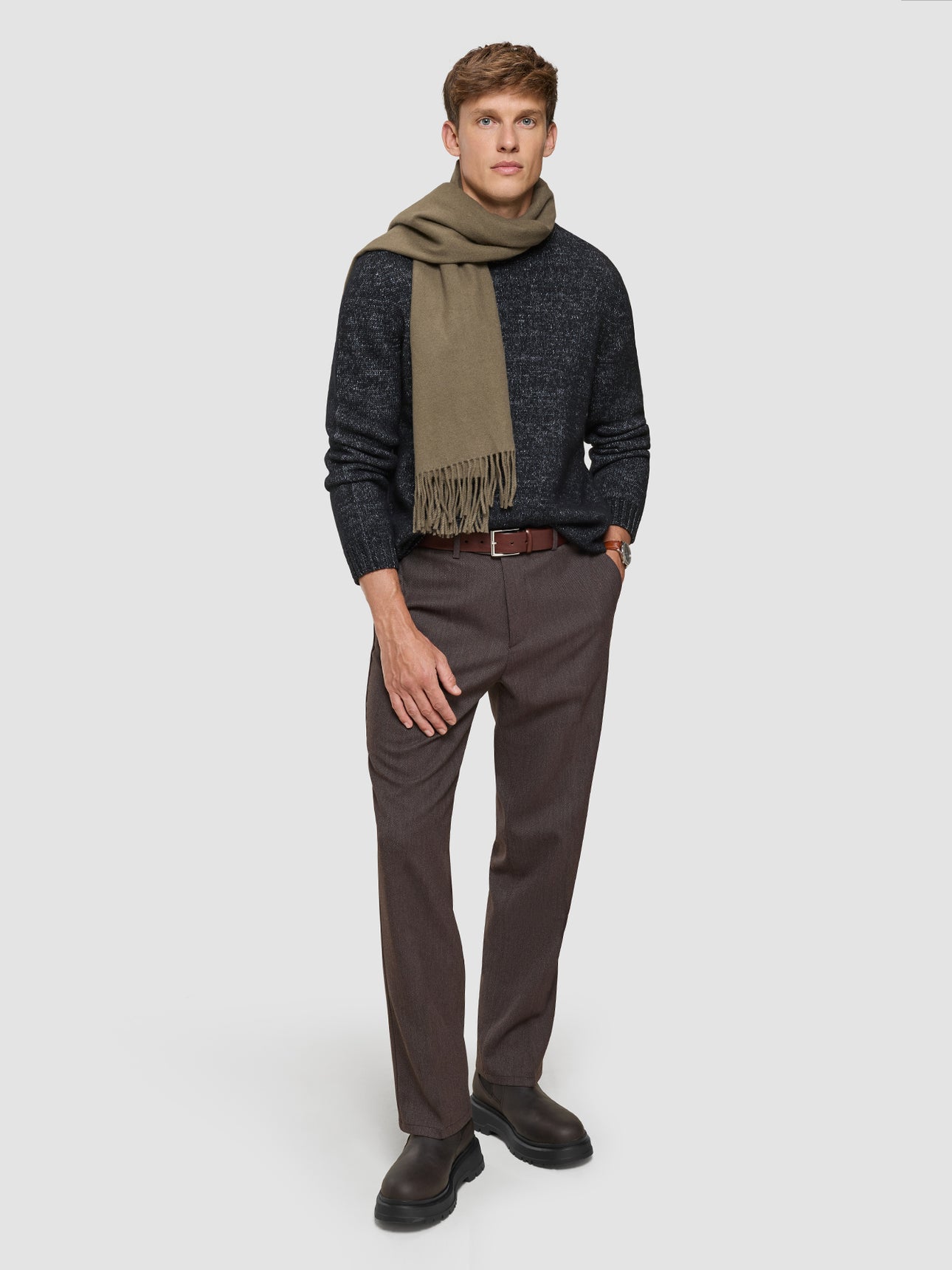 Egal, was der Tag bringt – mit diesem Look bist du ready. Der beige Crewneck und die hellgrauen Classic Pants sind die perfekte Kombi: entspannt, weich und flexibel, aber trotzdem stylisch. Die schwarzen Reeklass Sneakers dazu? Geht immer. Und wenn’s draußen ungemütlich wird, einfach die Hydro Jacket drüberwerfen – sieht gut aus und hält dich trocken.