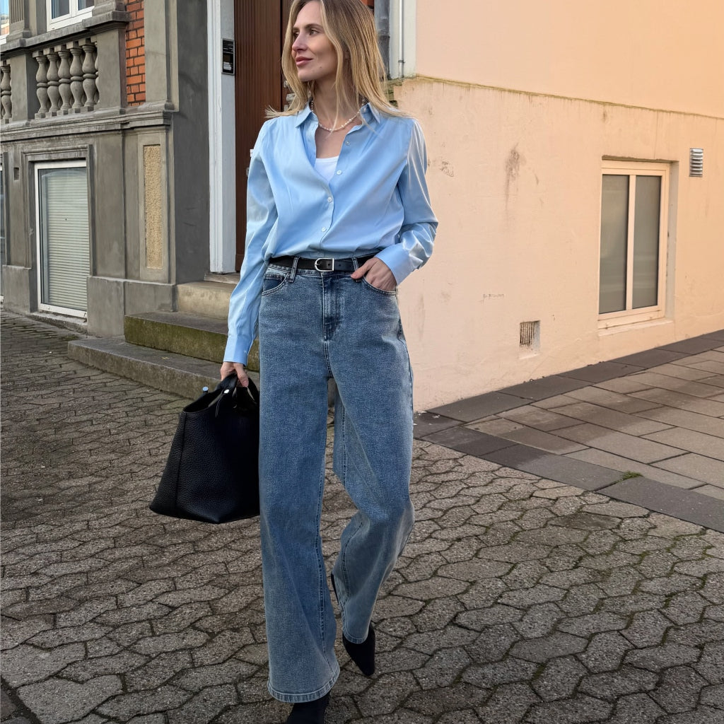 Das macht die Jeans angenehm über viele Stunden hinweg, ohne dass sie ihre Form verlieren. Du bekommst einen sauberen, strukturierten Look – ohne dich eingeengt zu fühlen. Genau so sollten bequeme Jeans für Damen sein.