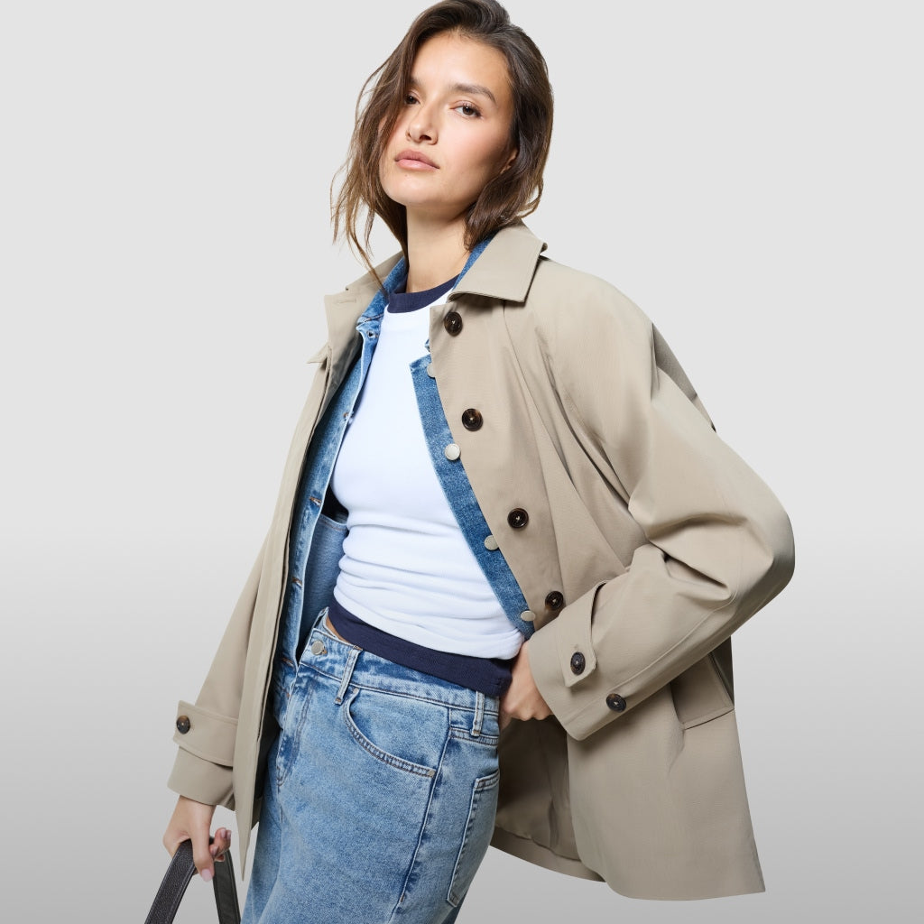 Ein wasserfester Short Trenchcoat ist im Frühjahr fast schon Pflicht – leicht, funktional und stilvoll zugleich.