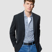 Dieser Look liegt genau zwischen elegant und entspannt. Der Essential Blazer in Schwarz sorgt für eine klare Silhouette, ohne steif zu wirken – kombiniert mit dem Classic Shirt mit feinen Streifen und einem weißen Supima T-Shirt darunter. Dazu die Matteo Jeans in Mid Blue. Locker, modern und eine unkomplizierte Art, einen Blazer zu tragen.