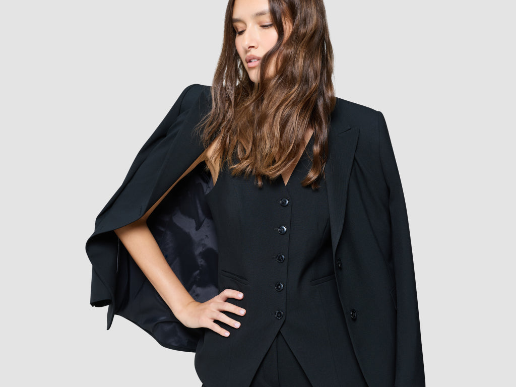 Tech Wool kombiniert Wolle, Polyester und Stretch – knitterarm, atmungsaktiv und langlebig. Sieht hochwertig aus, fühlt sich soft an und bewegt sich mit dir.